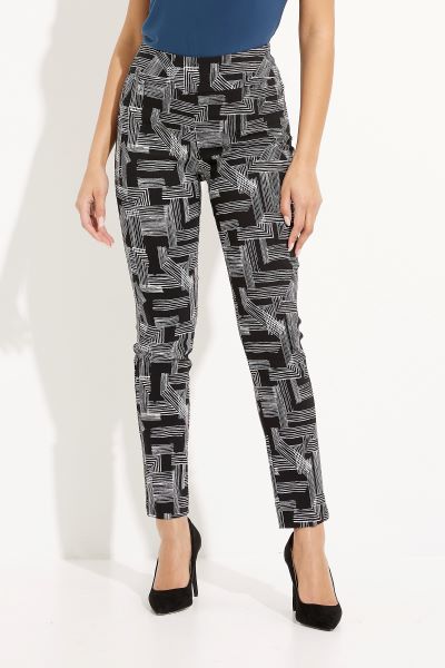 These Joseph Ribkoff pants are crafted with a slim-fit and mid-rise waistband, making them a must for your closet. Designed from a stretchy fabric, these would look flattering on every body type. Their standout feature is no doubt the eye-catching geometric motif and cropped ankle.