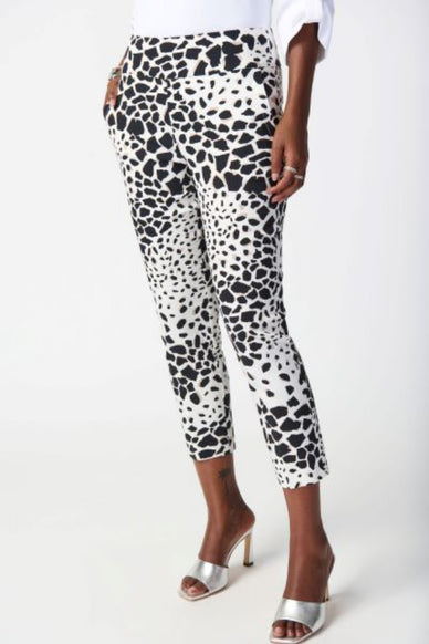 Combining three elegantly understated colors, these Joseph Ribkoff cropped pants feature beautiful animal-inspired spots. What's more, they have a fitted and stretchy silhouette, making them a tremendously comfortable choice. Beyond that, they are practical thanks to their pockets. Pair these with a solid top to really let their animal print make a statement!