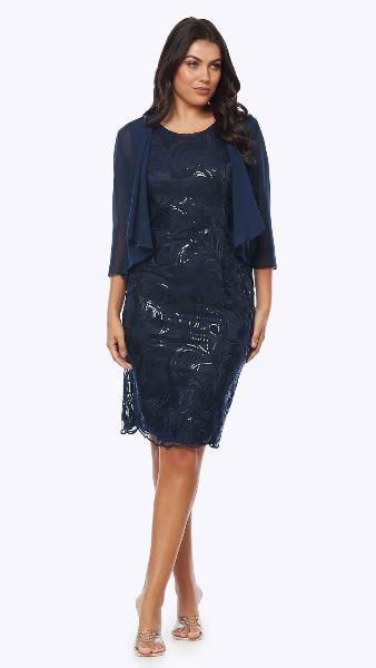 Embroidered Sequin Lace Dress with Chiffon Jacket