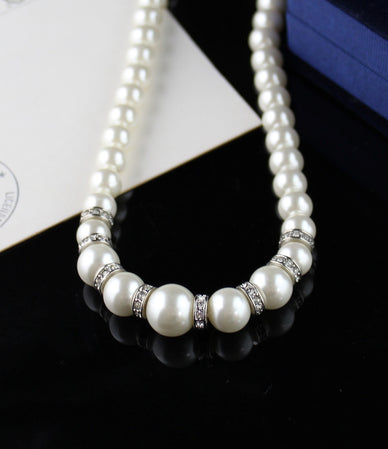 Faux Pearl Necklace with feature Diamante Spacers - SALE