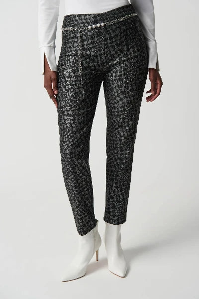 This is the season of shine, and these Joseph Ribkoff pants make it look real easy! Cropped at the ankle, these metallic pants boast a structured fit and classic silhouette. Elevate the look by pairing with your favorite ankle booties or a simple turtleneck sweater.