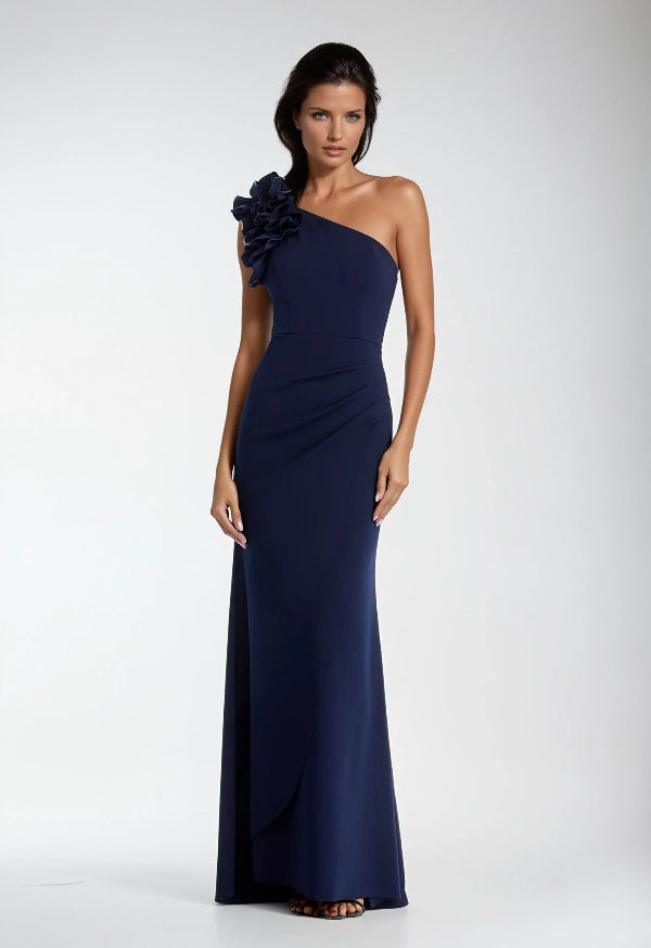 One Shoulder Long Stretch Crepe Gown