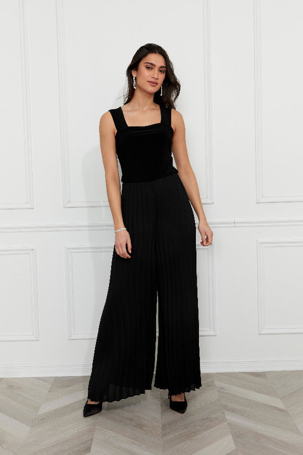 A lovely wide leg floaty pleated pant perfect for cocktail parties, events and weddings. The versatile wide-leg trousers from Frank Lyman is designed for both formal and casual settings.