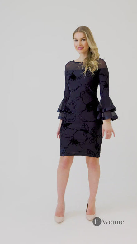 This exquisite piece features a boat-neck design and long, ruffled bell sleeves, making it perfect for both formal events and night outs.  The captivating floral pattern and feminine style add a touch of elegance, ensuring you stand out in any crowd.